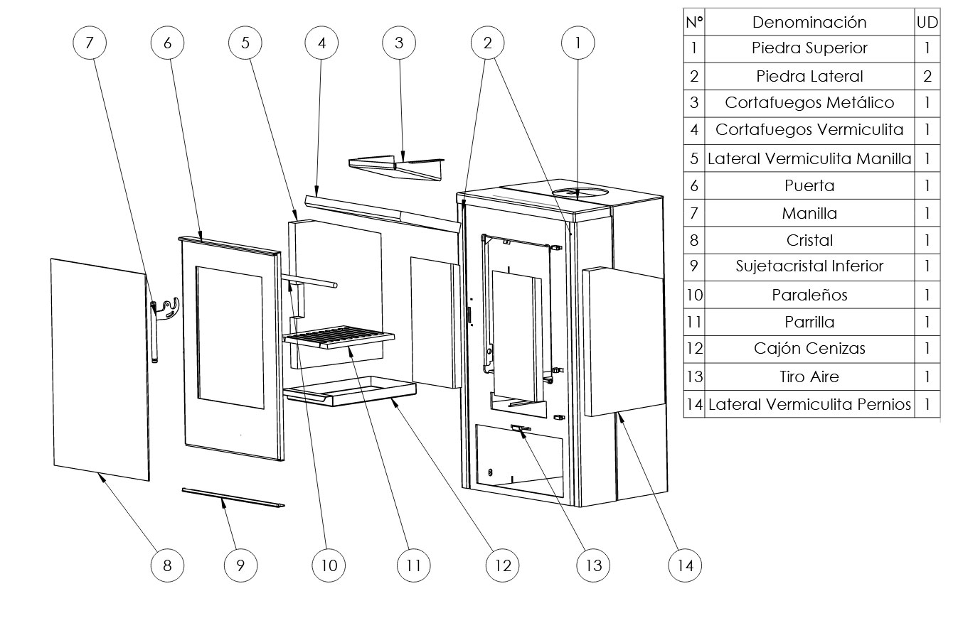 - Cuerpo en acero de 5 mm, interior en vermiculita y piedra natural (sólo Andes 3 Stones)